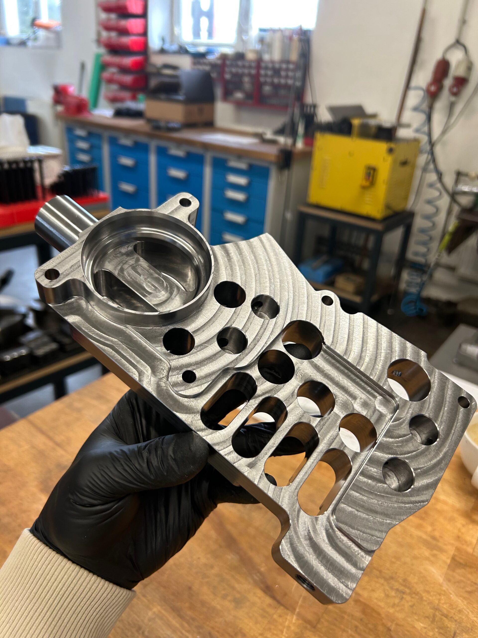 Složité tvarové plochy v jednom upnutí. Hydraulické bloky, tělesa ventilů, ložisková tělesa.